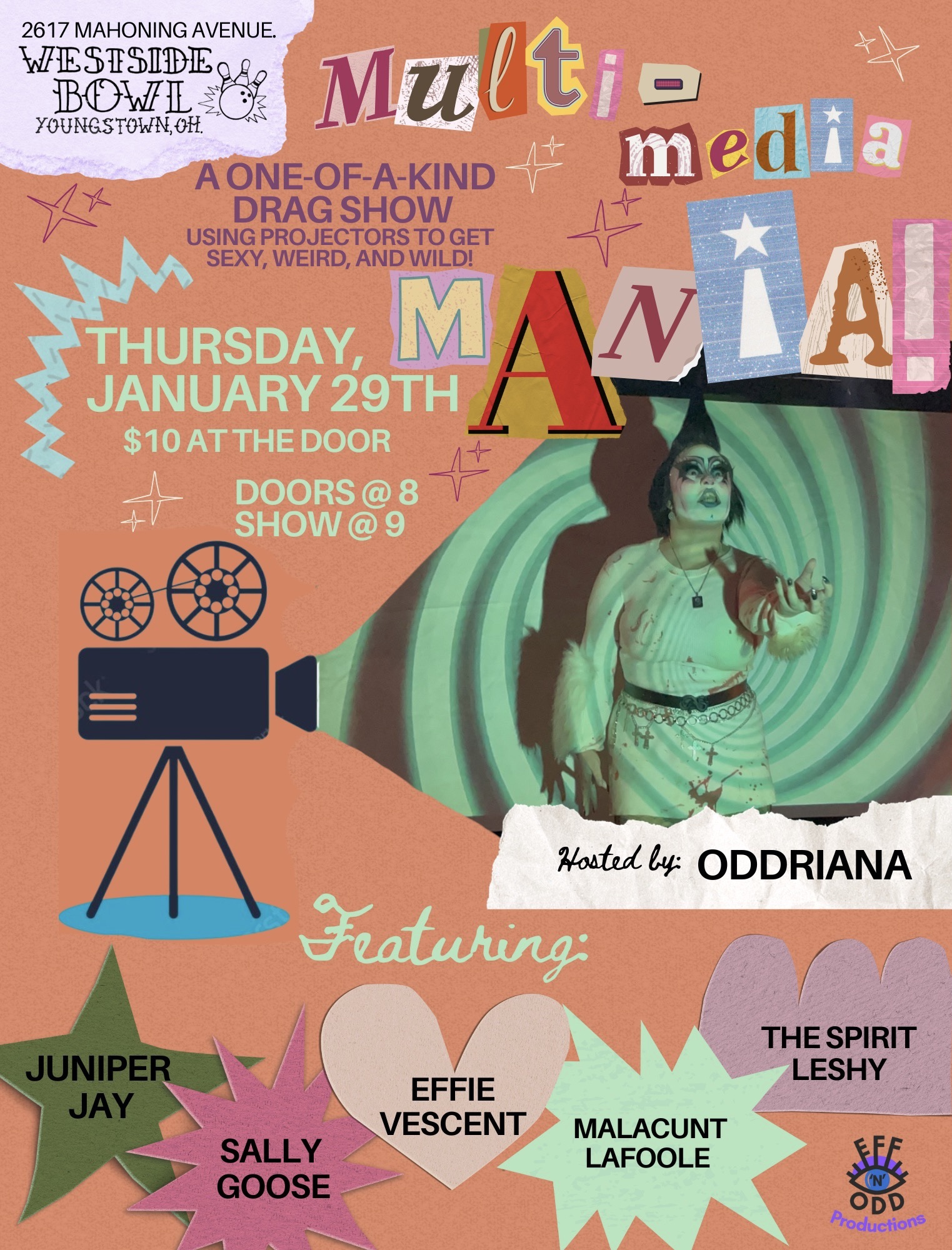 Thursday, January 29, 2026 at Westside Bowl in Youngstown, OH — Oddriana hosts a projector-driven drag showcase featuring Juniper Jay, Sally Goose, Effie Vescent, Malacunt LaFoole, and The Spirit Leshy. Projector Drag Show Y’all loved the last projector show so much, we’ve decided to bring the fun home to Youngstown! Join us for a drag […]