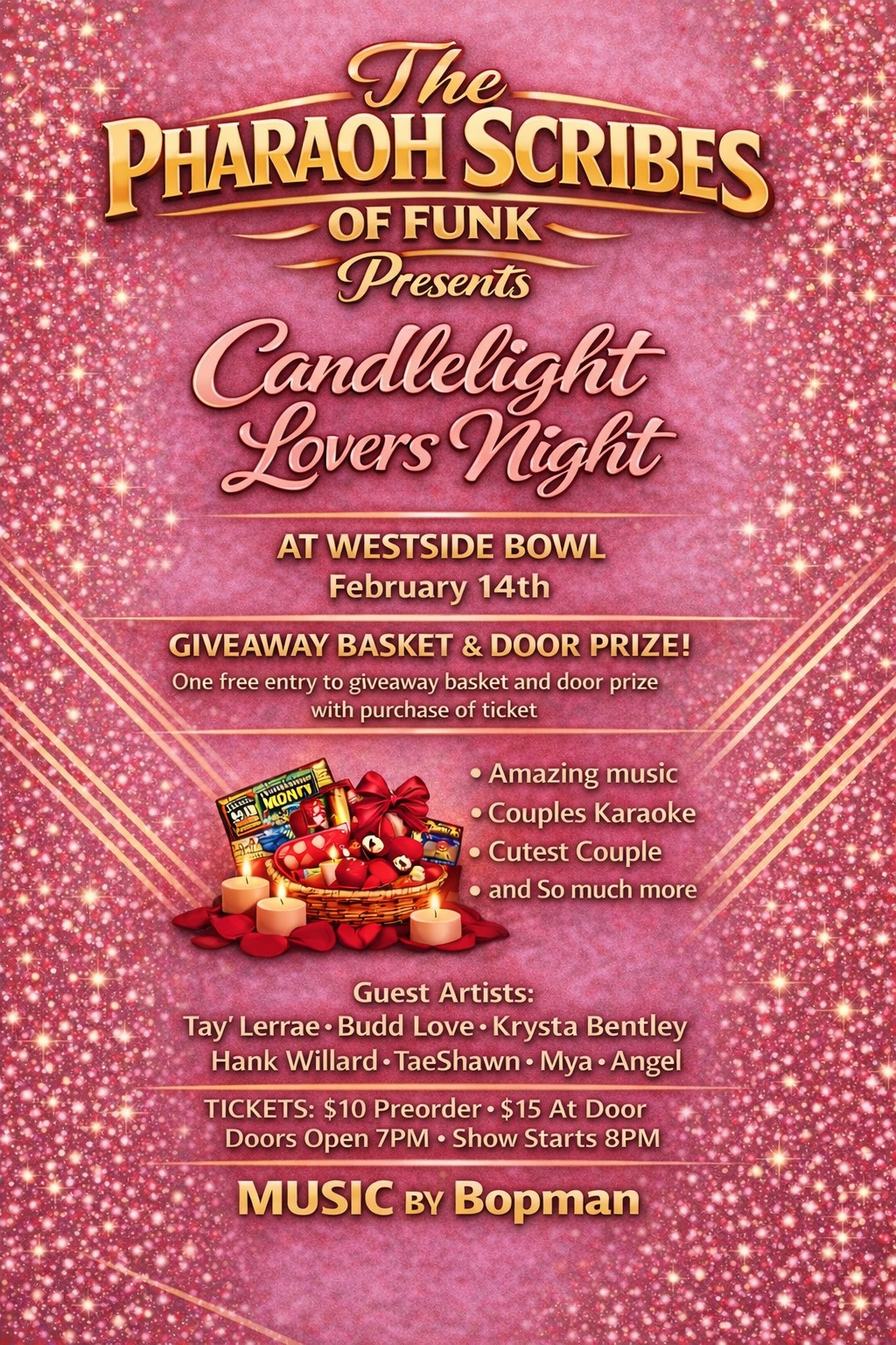 Saturday, February 14, 2026 — The Pharaoh Scribes of Funk present Candlelight Lovers Night featuring Tay’Lerrae, Budd Love, Krysta Bentley, Hank Willard, TaeShawn, Mya, and Angel, with music by Bopman. Candlelight Lovers Night Dress to impress and bring your favorite person (or your favorite vibe). This one’s built for slow jams, smooth moves, and a […]