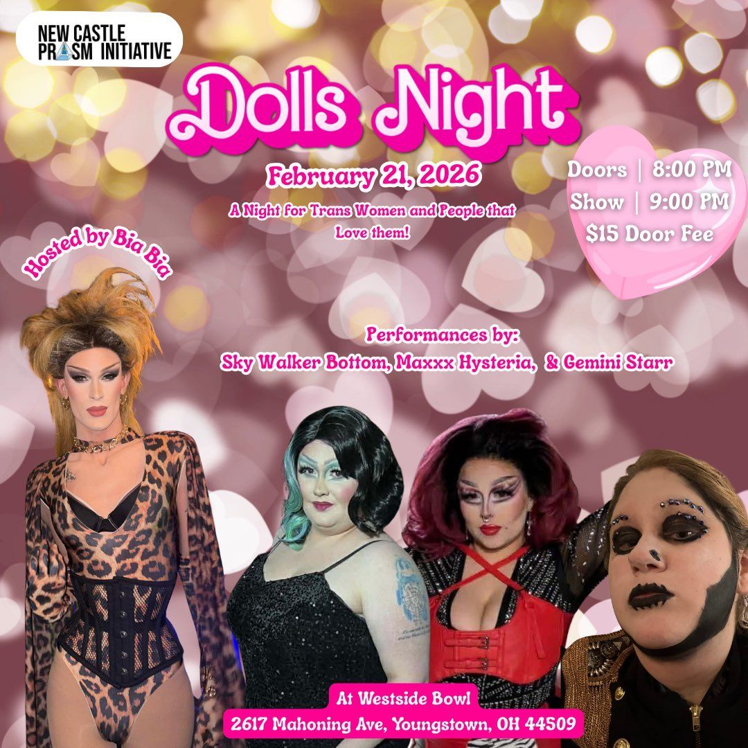 ✨🎀 DOLLS NIGHT is coming to Westside Bowl for a radiant evening of trans joy, drag artistry, and community love 🎀✨. Presented by The New Castle Prism Initiative, this celebration centers trans women, drag performers, and the people who show up for them—loudly, proudly, and with heart 💖. |
