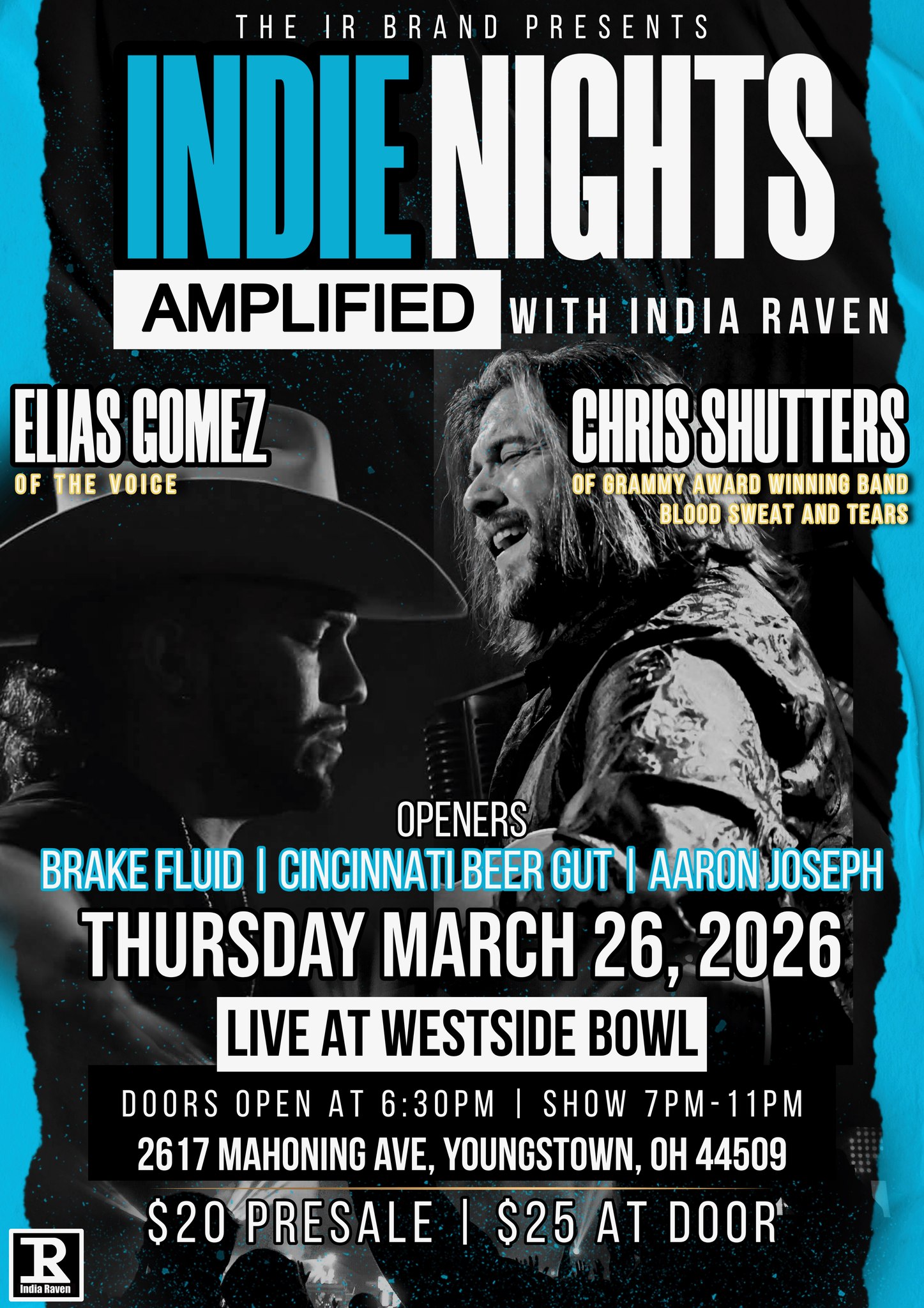 Celebrate local creativity at Indie Nights 🎤✨ Founded by India Raven, this Youngstown showcase uplifts independent artists across genres, connecting talent and community through live performance. Featuring Chris Shutters, Elias Gomez, Brake Fluid, Cincinnati Beer Gut, and Aaron Joseph—don’t miss this vibrant night of original music and fresh voices 🎶🔥