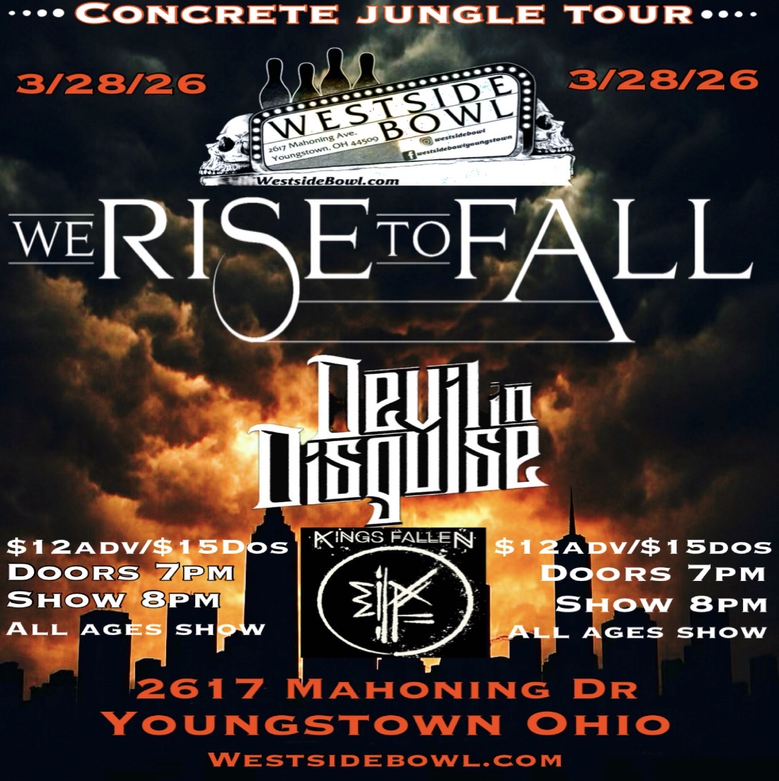 We Rise To Fall, Devil In Disguise, and Kings Fallen bring a heavy night to Youngstown. Check out the bands here: We Rise To Fall, Devil In Disguise, Kings Fallen. 🚪 Doors at 7:00 PM🎤 Show at 8:00 PM Tickets: $12 Advance / $15 Day Of Lineup We Rise To Fall Devil In Disguise Kings […]